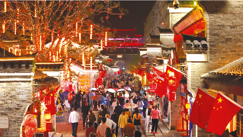 “双节”期间,广水各商超推出特色活动激活消费。以限时抢购、满元折扣吸引顾客,店内悬千面国旗成“国旗海”,电子屏循环播放城市宣传片。实惠活动加沉浸式场景,既显著提升日均客流,又带动本地特产销量增长,有效提振商业活力。