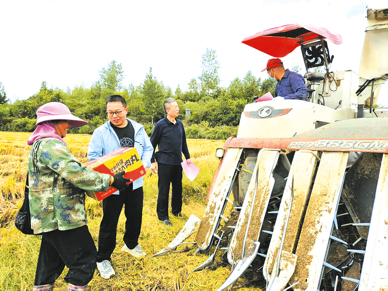 9月24日,为保障“三秋”稻谷机收作业高质高效推进,随县万和镇政府联合镇农机服务中心开展“战雨汛、保丰收、送温情”专项关爱行动,为奋战在秋收一线的跨区作业农机手送上饮用水、方便面等,传递贴心服务与关怀。(随州日报通讯员刘传黎、杨雨薇摄)