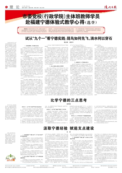 市委党校(行政学院)主体班教师学员 赴福建宁德体验式教学心得(选登)