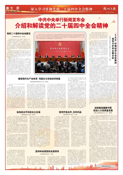 10月20日至23日,中国共产党第二十届中央委员会第四次全体会议在北京召开。这次全会是在我国即将胜利完成“十四五”主要目标任务,进入基本实现社会主义现代化夯实基础、全面发力的关键时期召开的一次重要会议。全会审议通过了《中共中央关于制定国民经济和社会发展第十五个五年规划的建议》。10月24日,中共中央举行新闻发布会,介绍和解读党的二十届四中全会精神。