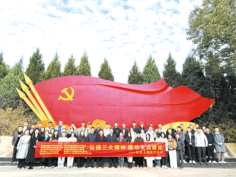 11月22日,湖北银行随州分行各党支部联合随州市中小企业融资担保有限公司党支部开展“弘扬三大精神 建功支点建设”红色主题教育活动。