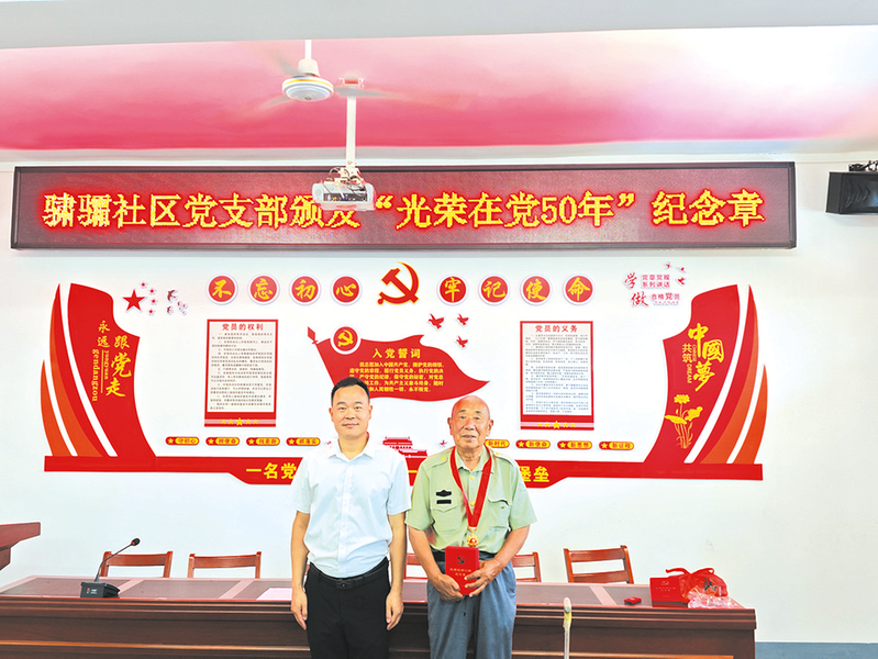 2025年“七一”骕骦社区党支部为老党员颁发“光荣在党50年”纪念章