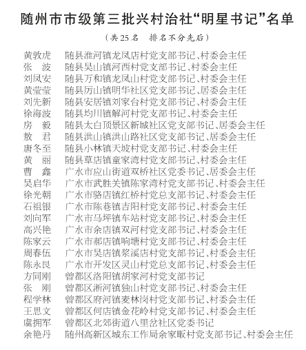 随州市市级第三批兴村治社 “明星书记”名单公示