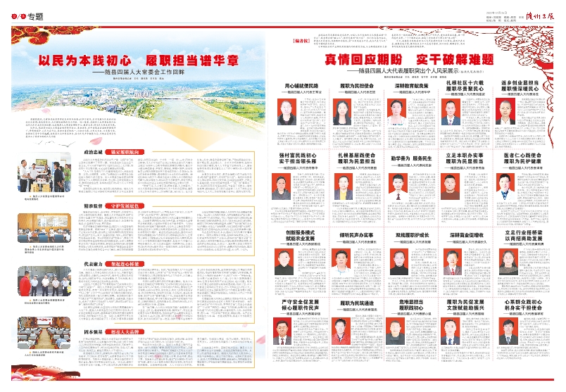 近年来,随县第四届人大常委会始终坚守初心、勇担使命,在中共随县县委的坚强领导下,将党的领导、人民当家作主、依法治国有机统一,以法治为基、以民生为本、以发展为要,在履职尽责中书写忠诚,在服务大局中彰显担当,在为民发声中凝聚力量,为随县高质量发展注入了源源不断的人大动能。