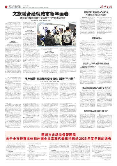 元旦假期,当大多数市民享受阖家团聚、休闲出游的喜悦时,随州城管系统的一线工作者们坚守岗位,用脚步丈量城市,以精细化管理和暖心服务,守护着城市的整洁与有序。