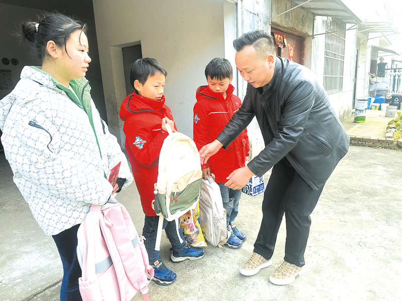 隆冬时节,寒风刺骨,曾都区经济开发区龚家棚村却暖意融融。1月10日,跛着腿的陈义德拎着沉甸甸的学习用品和牛奶,登门看望当地一户三孩困难家庭。“你们一定要好好读书,用知识改变命运!”他蹲下身叮嘱孩子们,粗糙的手掌轻轻抚过孩子的头顶,话语质朴却饱含力量。