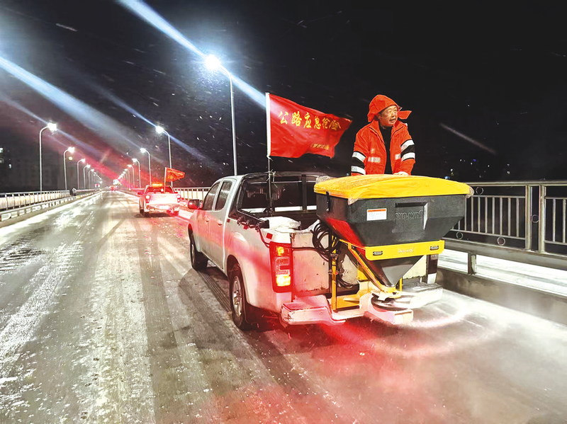 雪情就是命令,畅通关乎民生。面对低温降雪天气,我市城管、环卫、公安、市政等多部门闻雪而动,迅速启动应急预案,提前部署、连夜行动。各部门采取“人工除雪+撒盐融冰”相结合的方式,重点针对城区桥梁、主干道、交叉路口、坡道等关键区域与易结冰点位开展集中作业,全力保障道路安全畅通。