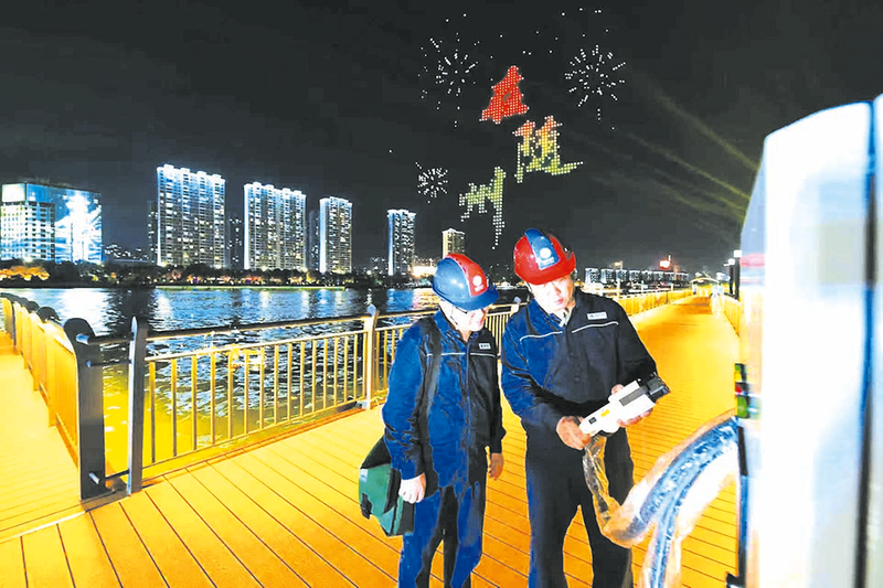 国网随州供电公司高新区供电中心员工巡检白云湖夜游项目用电设备