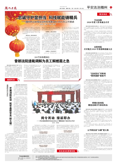 随州日报讯(通讯员王洪琴)近日,随州中院召开全市法院2026年度工作务虚会,传达学习中央政法工作会议精神、全国高级法院院长会议精神,对标新要求、新部署,谋划2026年全市法院工作思路和举措。