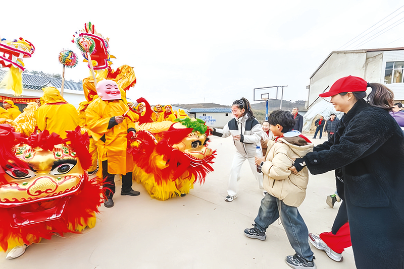 广水市送舞狮表演进乡村。(通讯员杨明月摄)