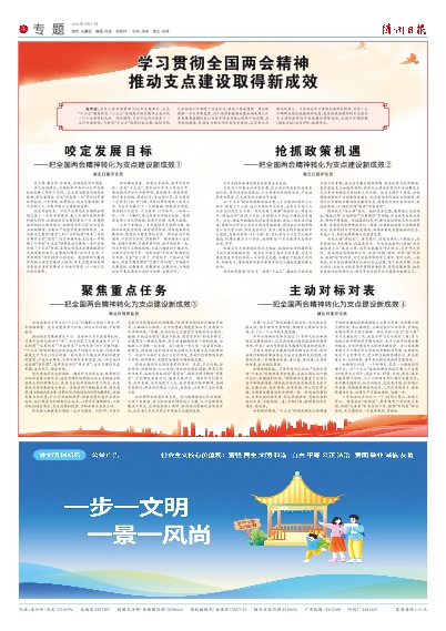 认清目标任务。习近平总书记在全国两会期间发表了一系列重要讲话,基于对国内国际形势的重大判断,就因地制宜发展新质生产力、在增强经济韧性上持续用力、在推进全体人民共同富裕上积极探索、全面从严治党等提出明确要求。从高质量发展的“速度”,到产业科技的“硬度”,再到百姓日子的“温度”,这次全国两会上还进一步明确了今年和“十五五”时期我国发展的一系列目标指标。“十五五”时期,是湖北确保支点建设取得决定性进展的五年,需要我们朝着“五年大变化、十年结硕果”的阶段性目标迈进。要将湖北发展的步伐融入国家发展的大脉动,将支点建设的各项任务放在国家发展的大目标中考量,以一域之光为全局添彩。